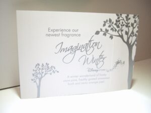 B to C product sampling placed in Disney Stores for a line of fragrance products. Pixie Dust, Mickey Mouse and Imagination Winter. Art Directed, Digital Illustration, Die Cutting Designs, Collaborated as a team member with Sales, Marketing, Print Production and Manufacturer.